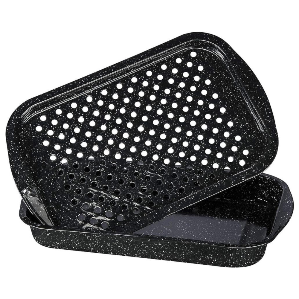 Add this Granite Ware pan set to your collection and cook more foods in your grill than ever before! Perfect for smoked Turkey or roasted garlic potatoes with thyme, rosemary and a hint of salt; really anything that needs a pan to cook. Handles extreme temperatures, from baking and roasting to grilling at high heat. Made with a durable porcelain and steel core construction, it’s thermal shock resistant and PTFE and PFOA free. Dishwasher safe for easy cleanup.
