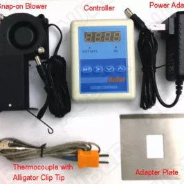 This PID controller and fan combo controls the temperature of your Saffire Grill and Smoker. The AI taught PID controller turns on and off the blower to maintain the target temperature you set for your Saffire smoker.
