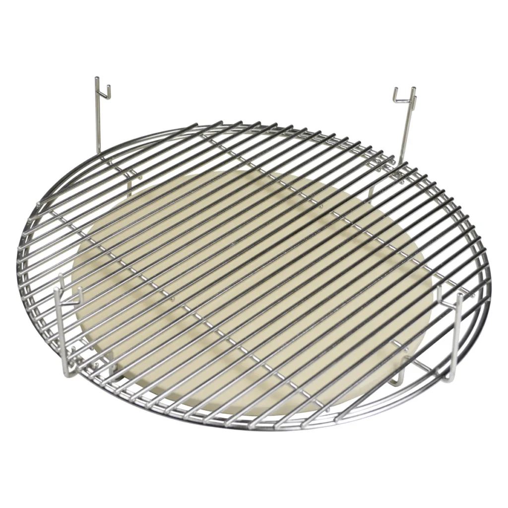 If you want to place your Primary Cooking Grid down near the charcoal for a more intense cook, simply turn the Primary Cooking Grid 90 degrees so the bars slip past the hooks, then let it rest on the bottom level. You can tell the Primary Cooking Grid will slip past the hooks by paying attention to the bars the run along the top of the grid.